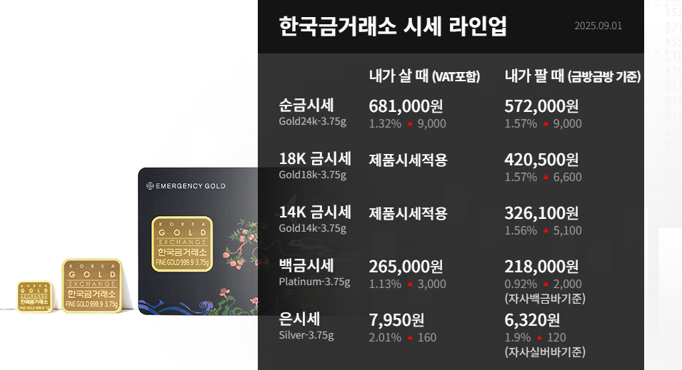 9/1 시세 한눈에 보기 (1돈=3.75g, 한국금거래소)